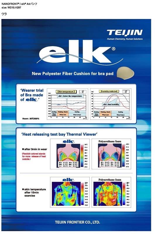 By selecting special fibers from Japan, Aconic Q-tex fiberfill foam is very soft, breathable and light in quality. It is the perfect material for sports underwear. Test report released by TEIJIN Frontier Co., ltd. Osaka R&D Center